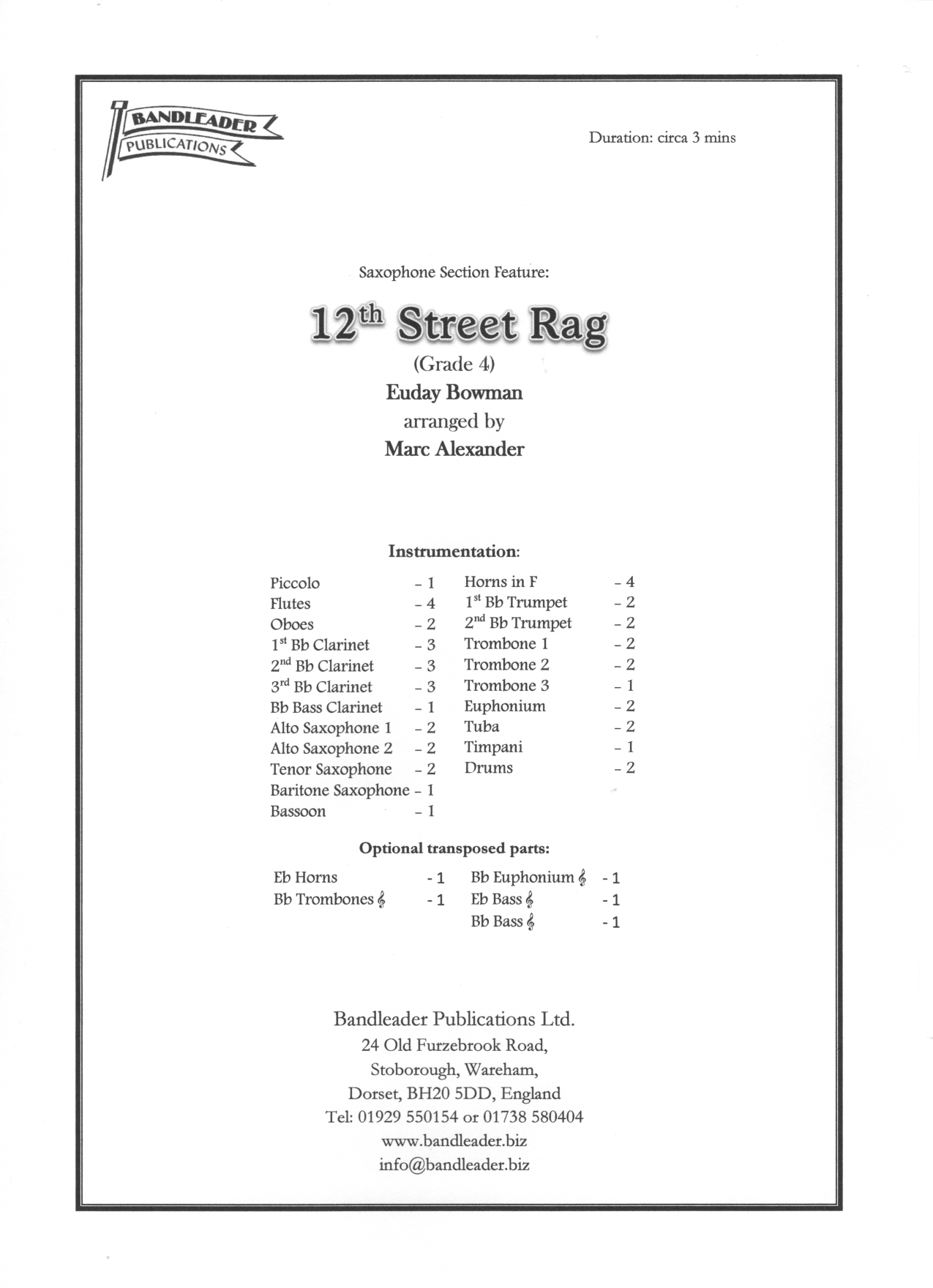 Instrumentation: Saxophone section (Alto Sax 1/Alto Sax 2/Ten. Sax/Bari. Sax) and Wind Band