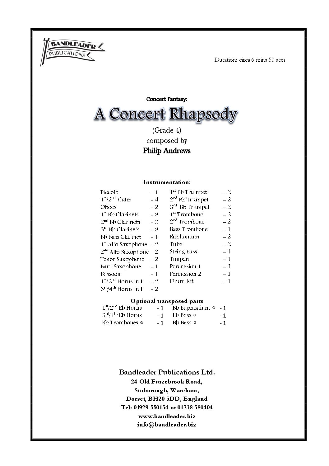 An asset to your repertoire which the Band will enjoy performing along with great audience appeal.