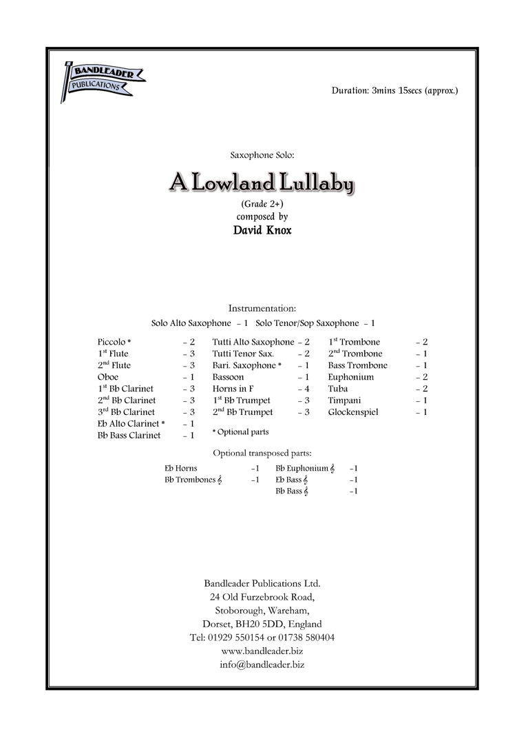 Solo for Soprano, Alto or Tenor Saxophone and Windband.