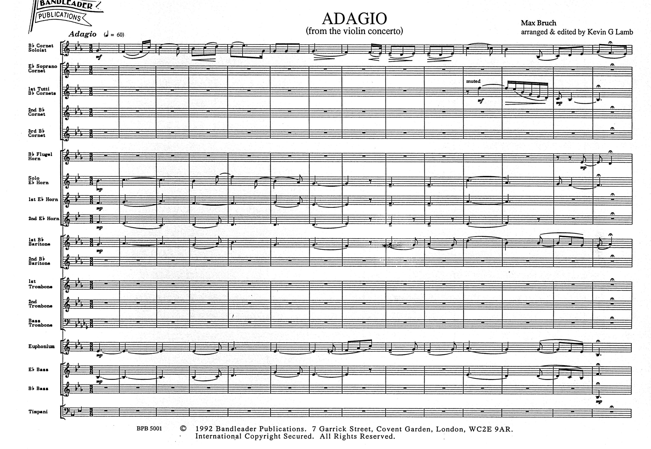 A superb arrangement for Cornet of the famous Adagio from Bruch’s exquisite Violin Concerto No. 1.