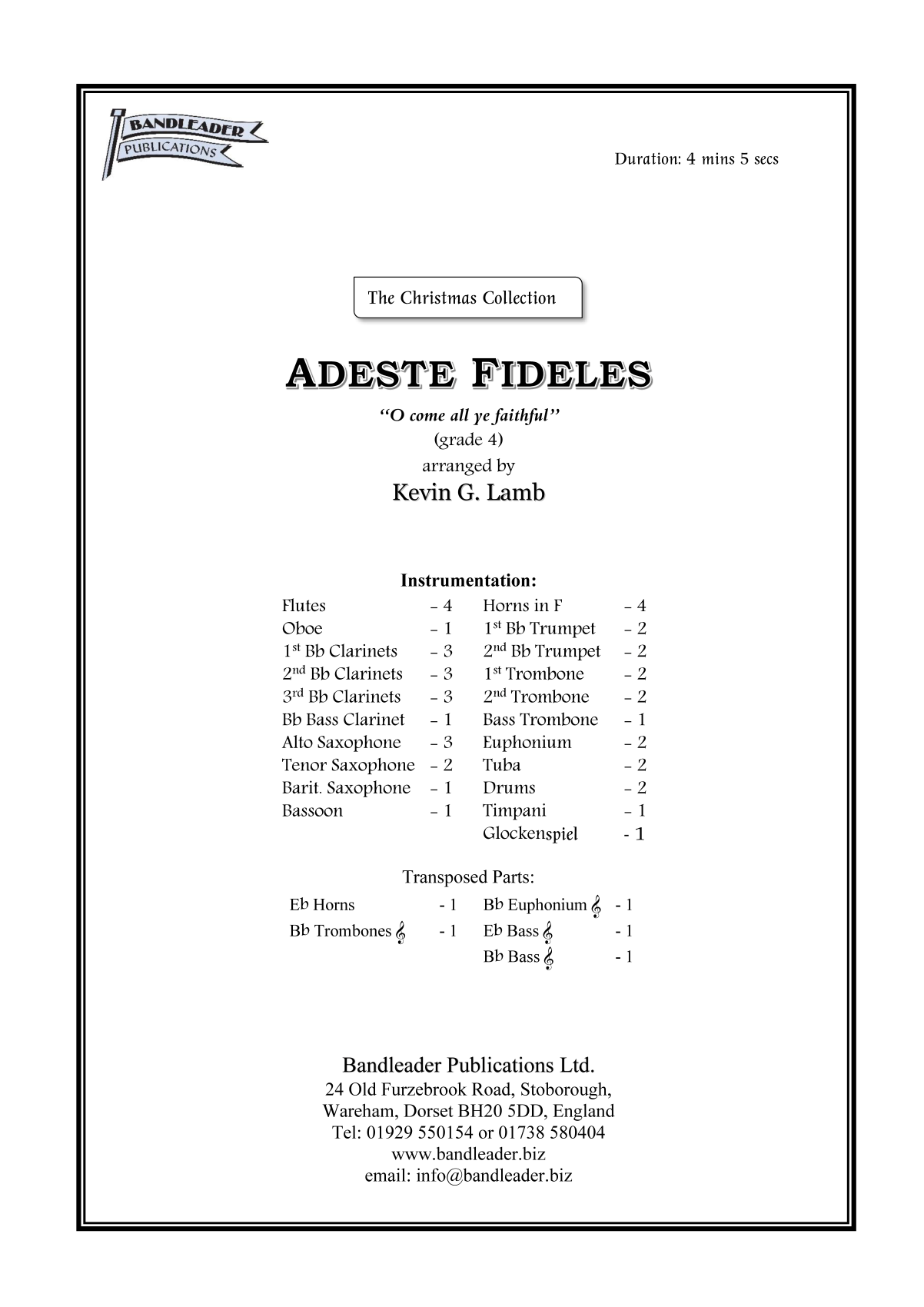 Perhaps the most famous Christmas song of them all, expertly arranged by Kevin Lamb. It begins with a Fanfare and Soliloquy, then moves seamlessly into the main verses before returning to the fanfare, this time bringing us to a rousing conclusion! The verses can also be sung by your audiences.
