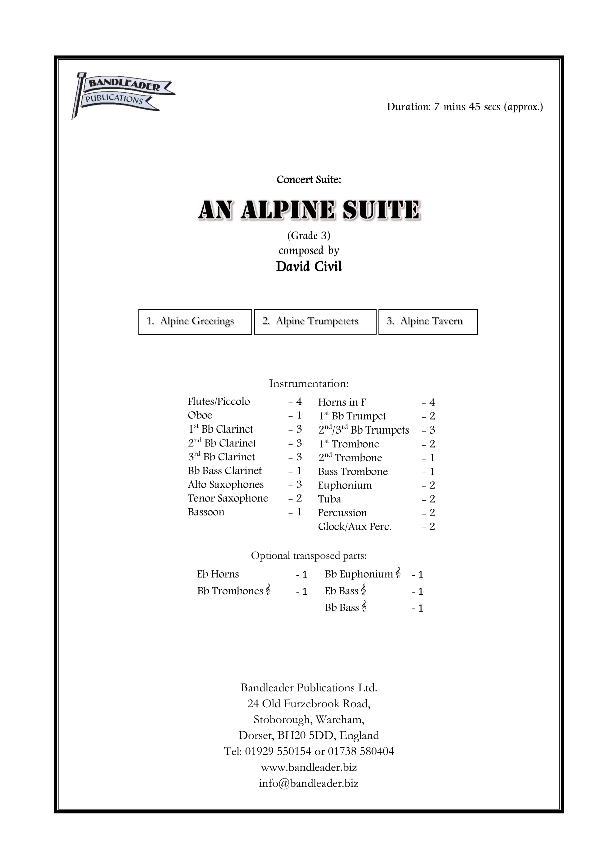 A concert suite in three movements, full of Bavarian flavour! Movt. 1 – Alpine Greetings