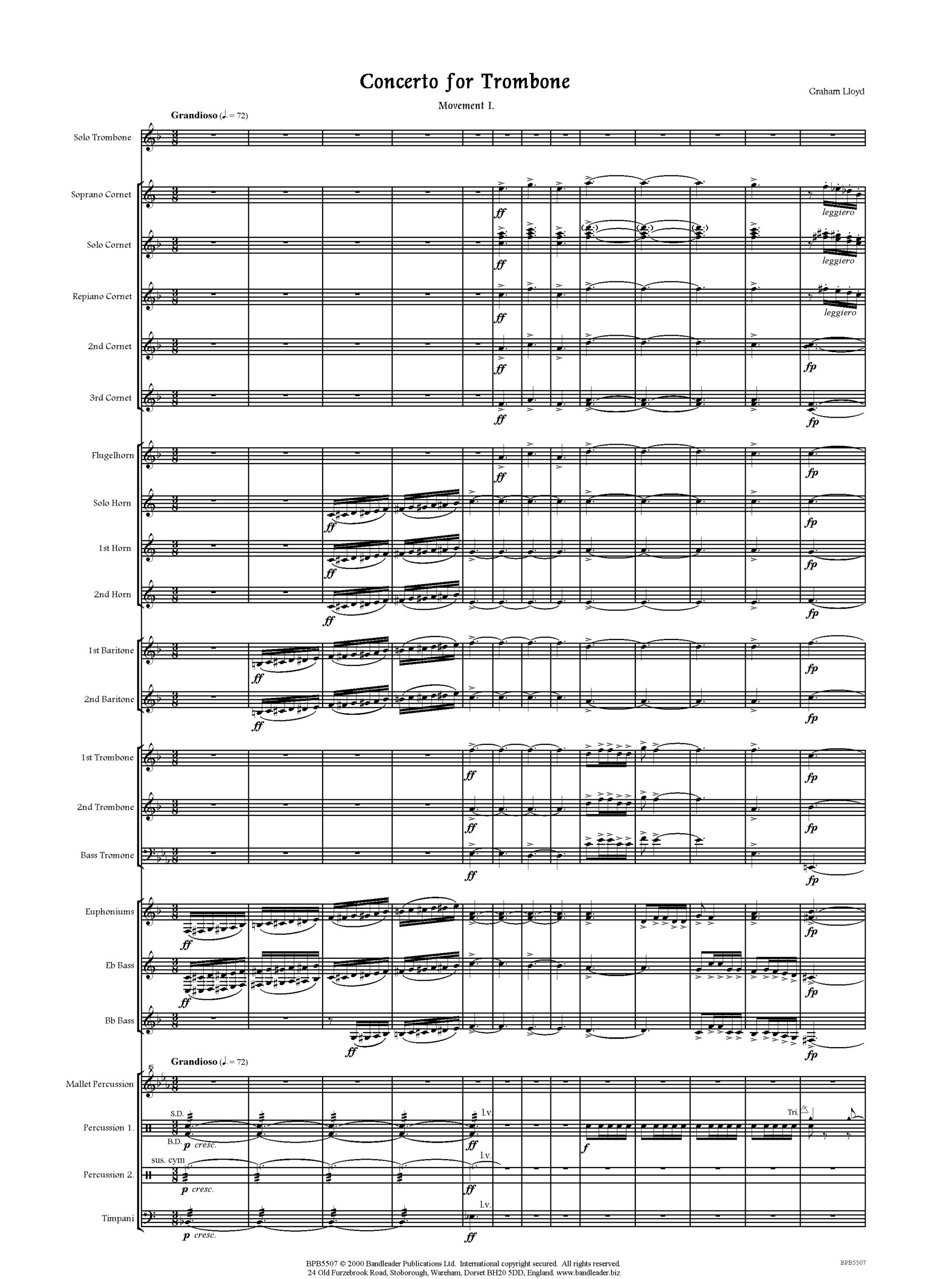 A powerful new major work for Trombone and Brass Band by Australian composer Graham Lloyd. Essential repertoire for the discerning Trombone soloist.