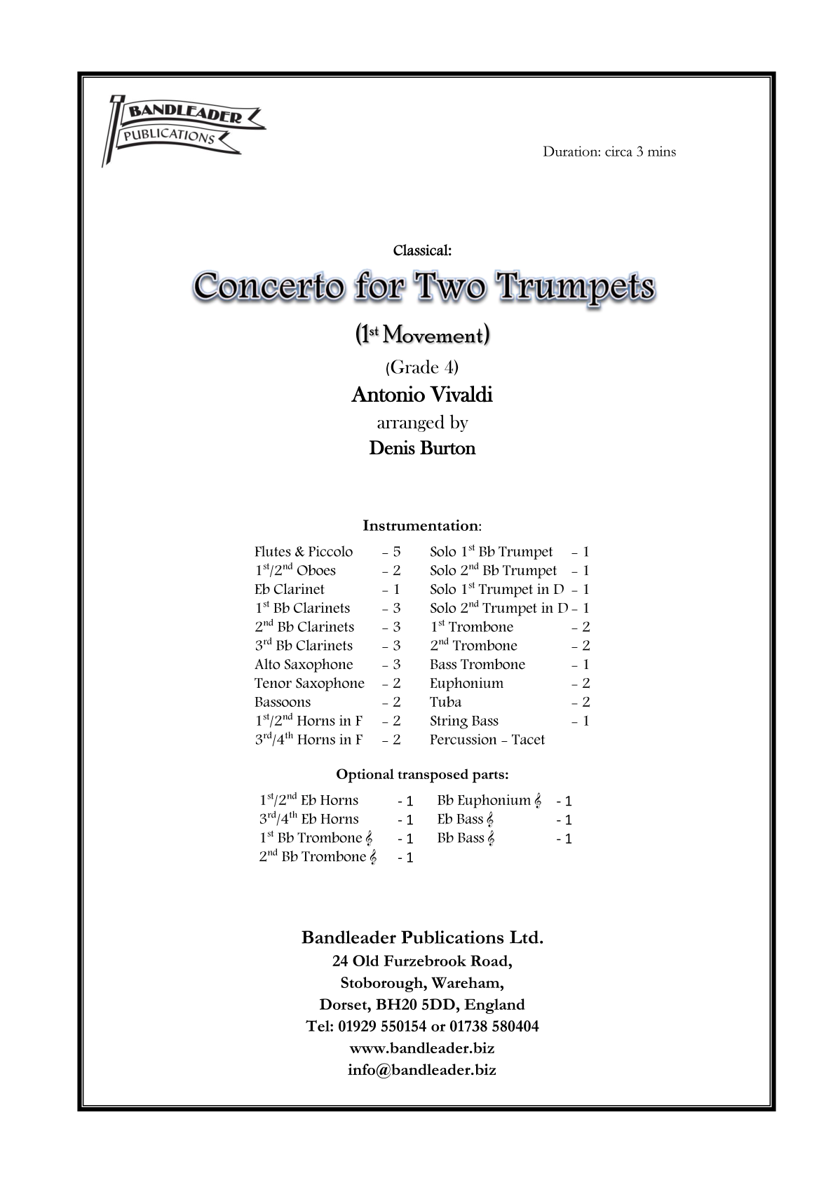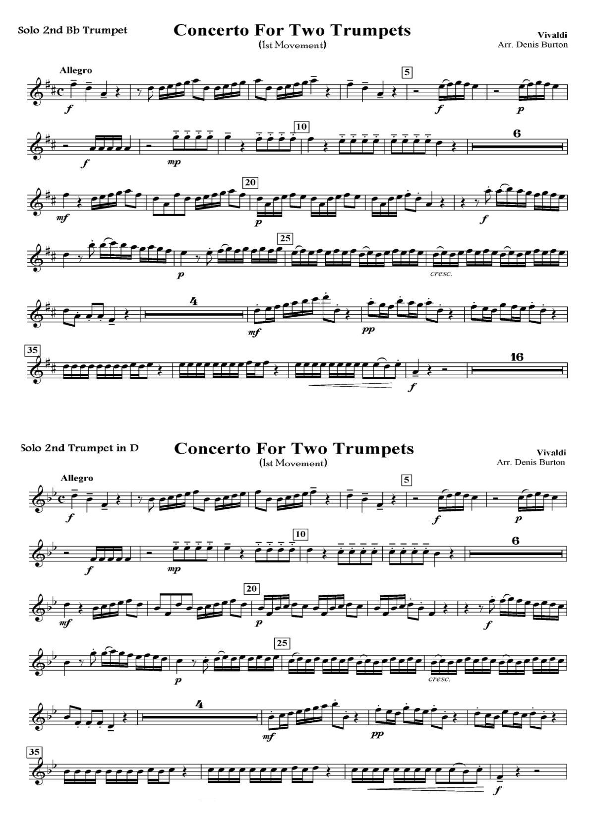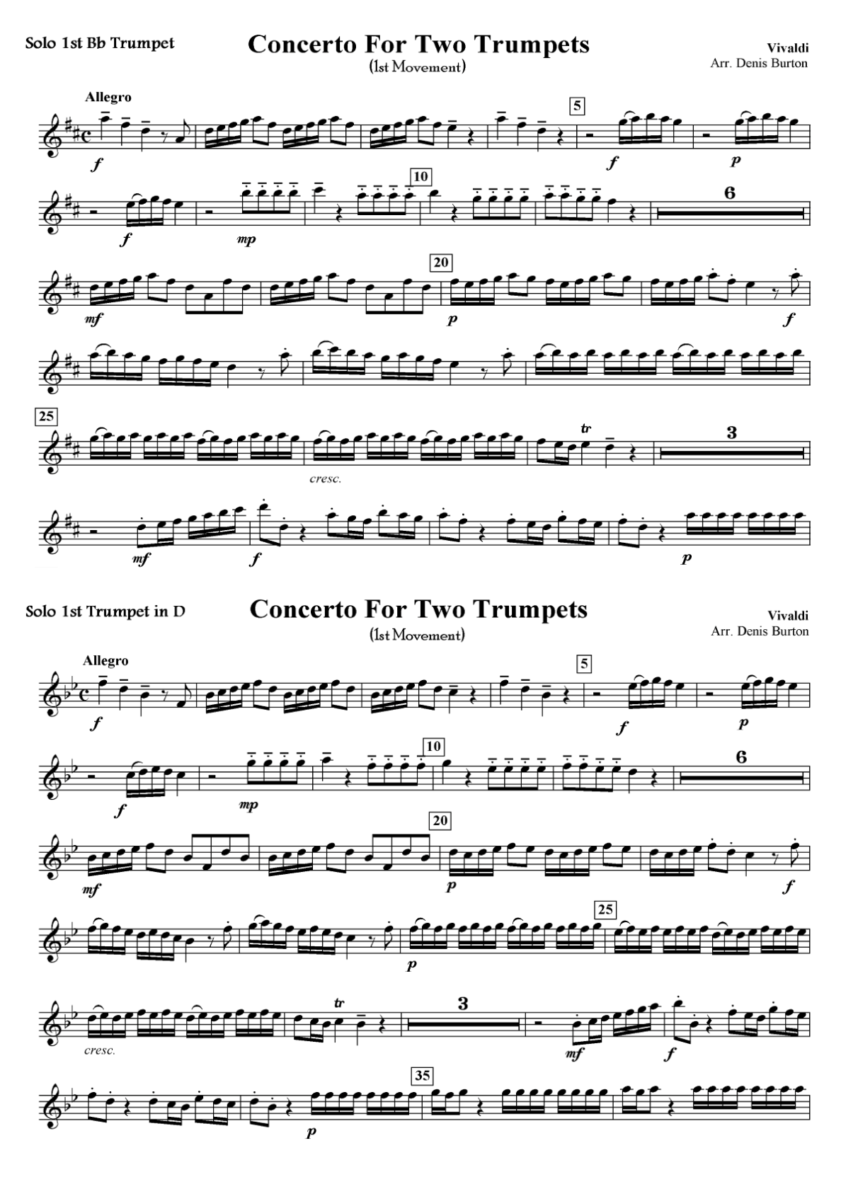 The first movement of this famous concerto by Vivaldi and arranged by Denis Burton. Excellent repertoire for extrovert soloists.