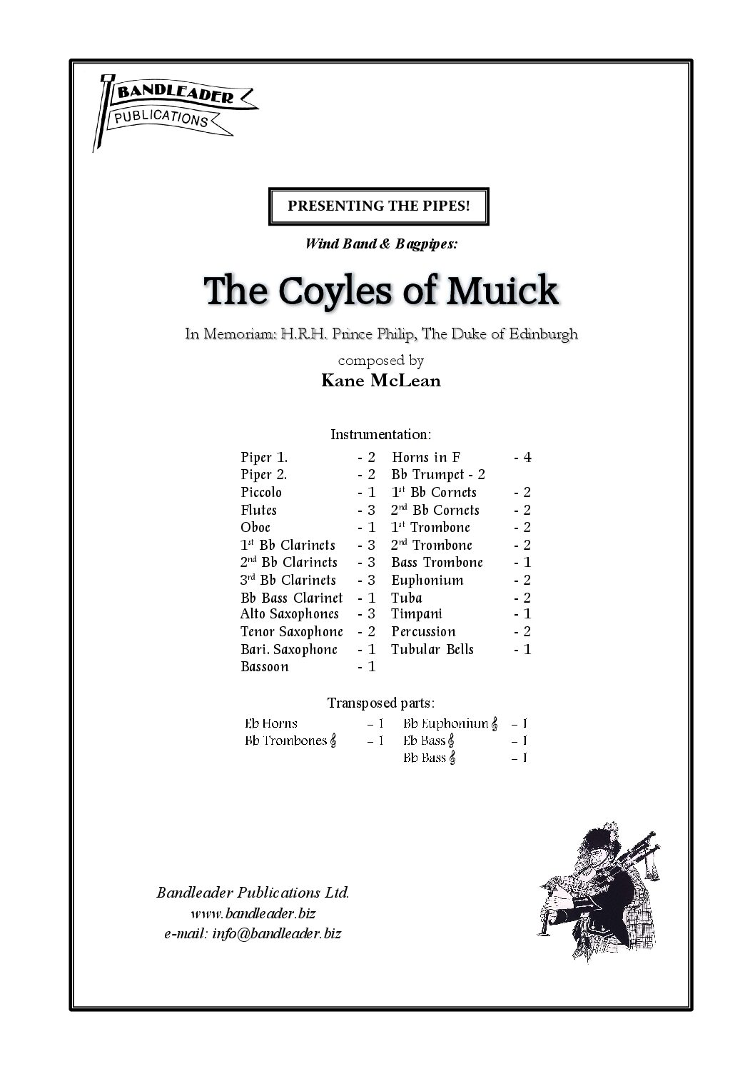 An impressive new work from Kane McLean. Winner of a prestigious competition from the Scots Guards, the music is dedicated to the late H.R.H. Prince Philip, The Duke of Edinburgh. The Coyles of Muick is a beautiful area of Scotland which was a favourite place of Queen Elizabeth and Prince Philip.