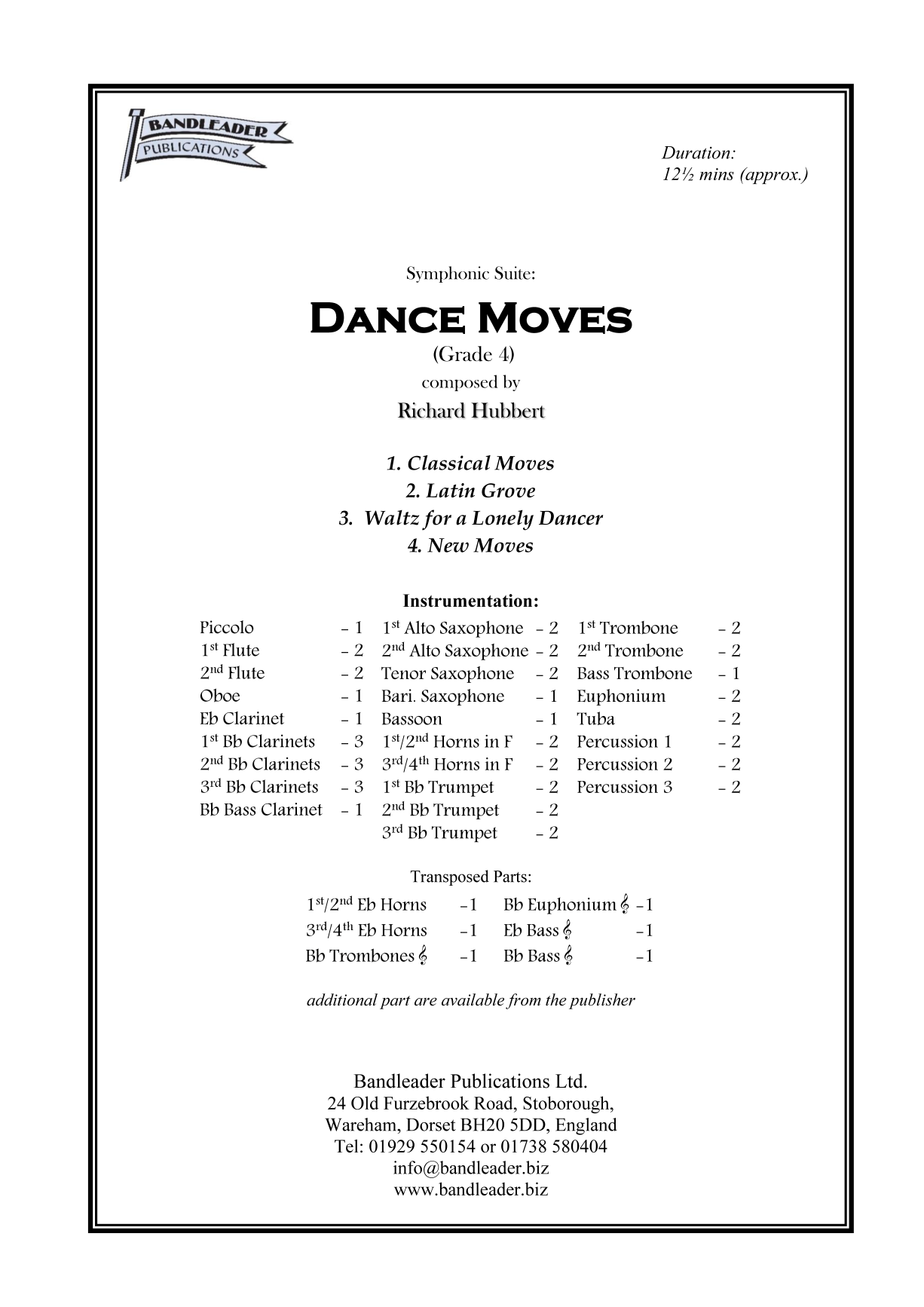 A joyous suite in four contrasting movements, each eloquently depicting a type of dance. A great work for concerts & competitions!