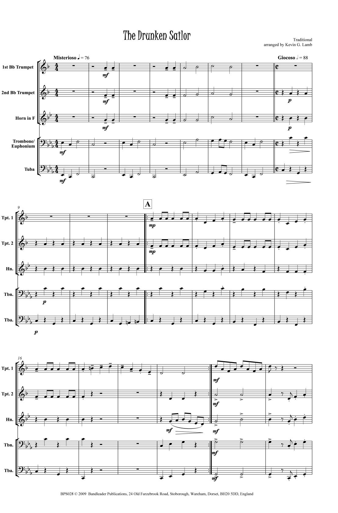 Instrumentation: 2 Trumpets; Horn in F; Trombone; Tuba (Alternative parts: Horn in Eb; Bb Trombone TC; Eb Bass TC)