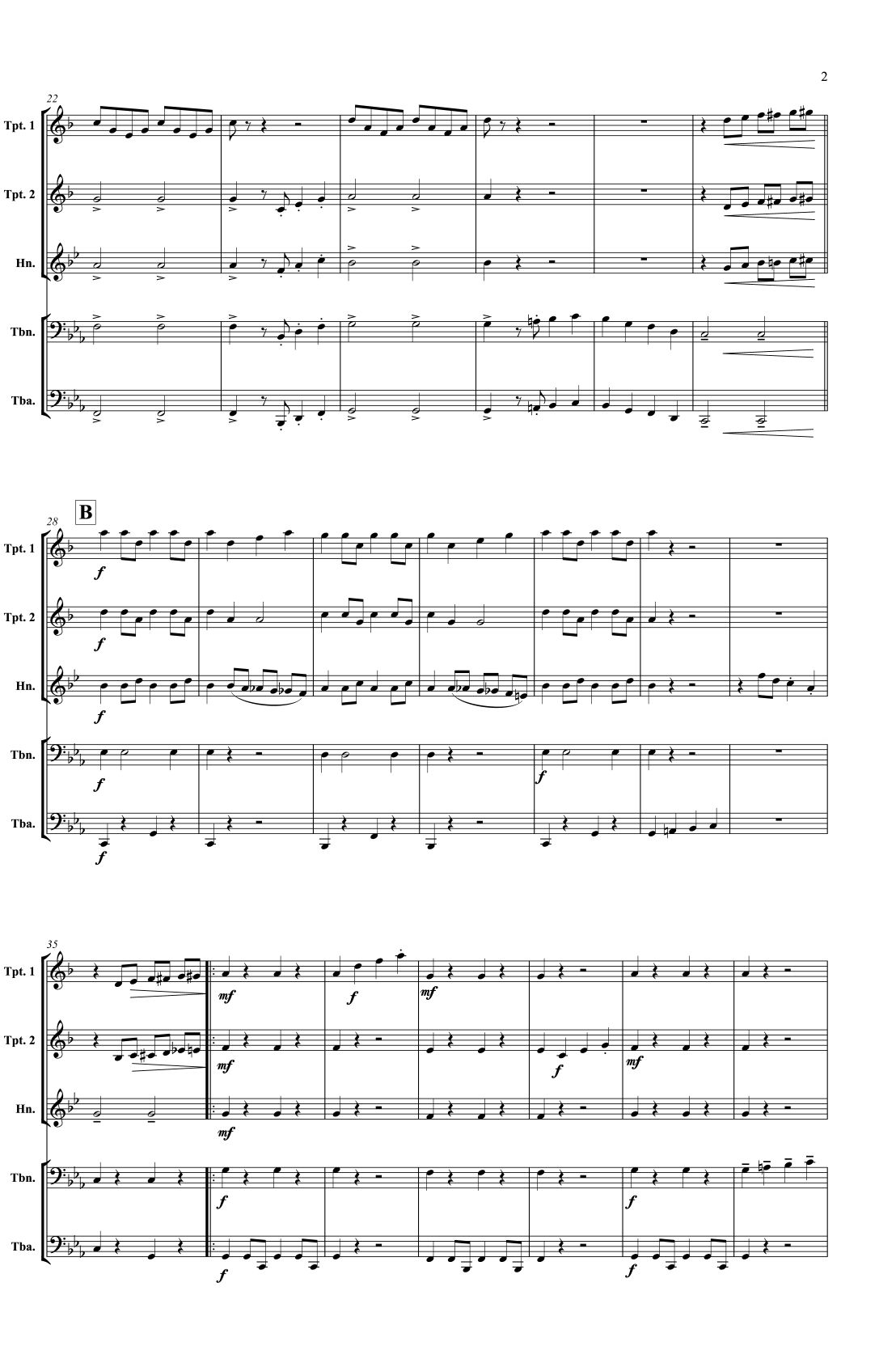 Instrumentation: 2 Trumpets; Horn; Trombone/Euphonium & Tuba