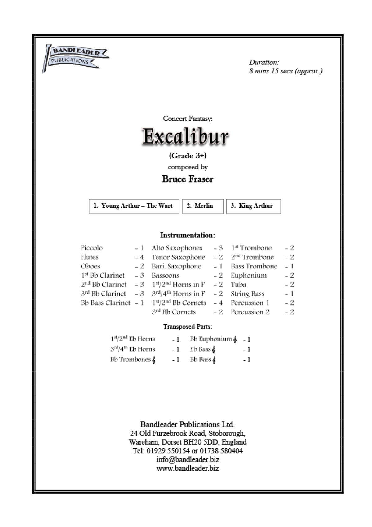 A majestic concert fantasy in three movements, portraying the adventures of the young Arthur; his companion & mentor, the wizard Merlin; and culminating in his taking of the sword ‘Excalibur’ and his coronation as King.