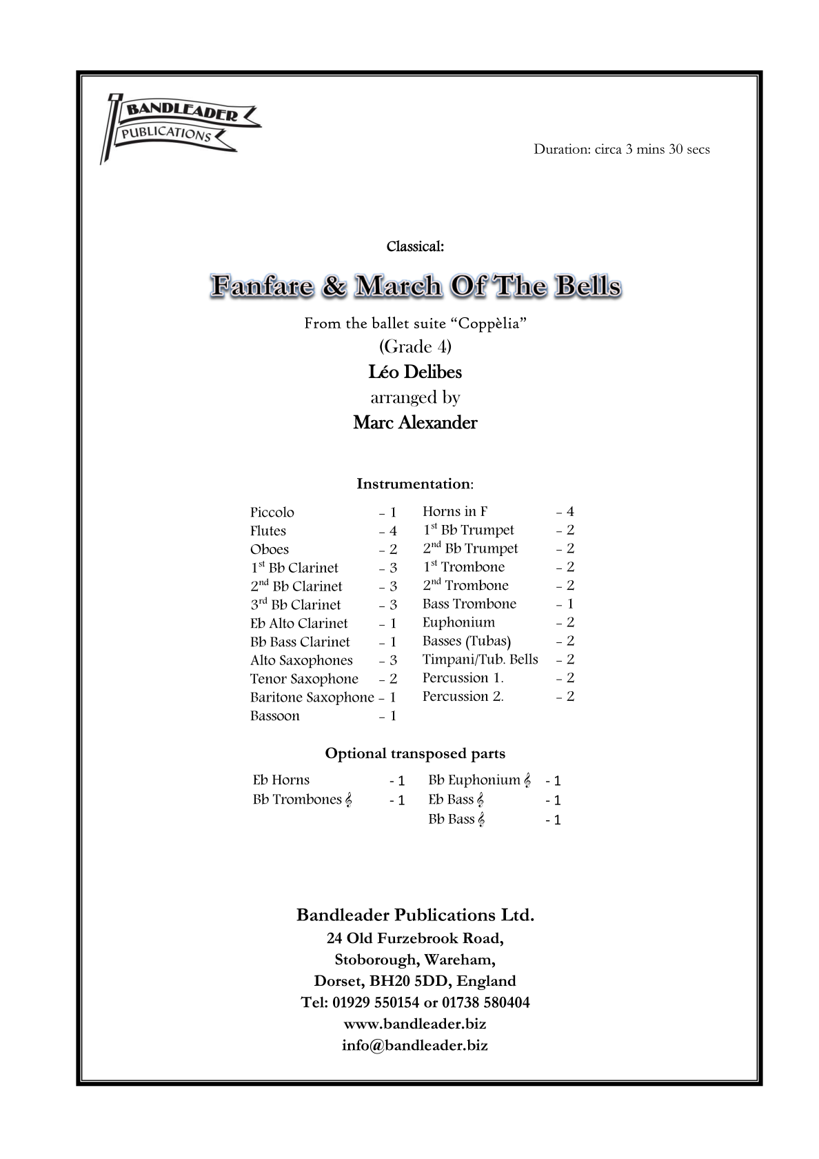 An ideal opener to your concerts. Taken from the Ballet Suite “Coppelia”, this is an exciting work to add to your repertoire.