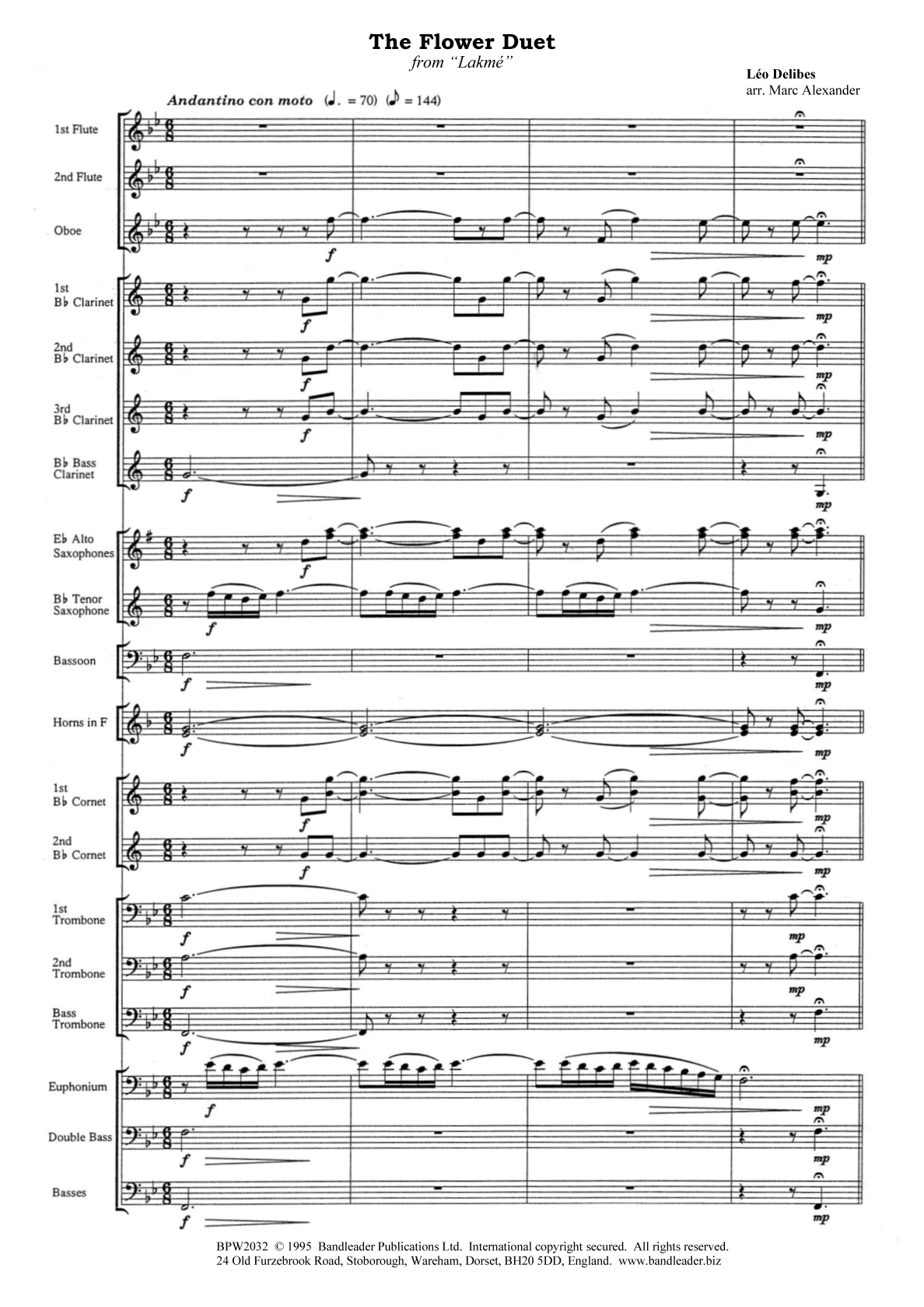 A beautiful setting for Flutes of this famous operatic duet – you may recognise it as a TV advertisement!