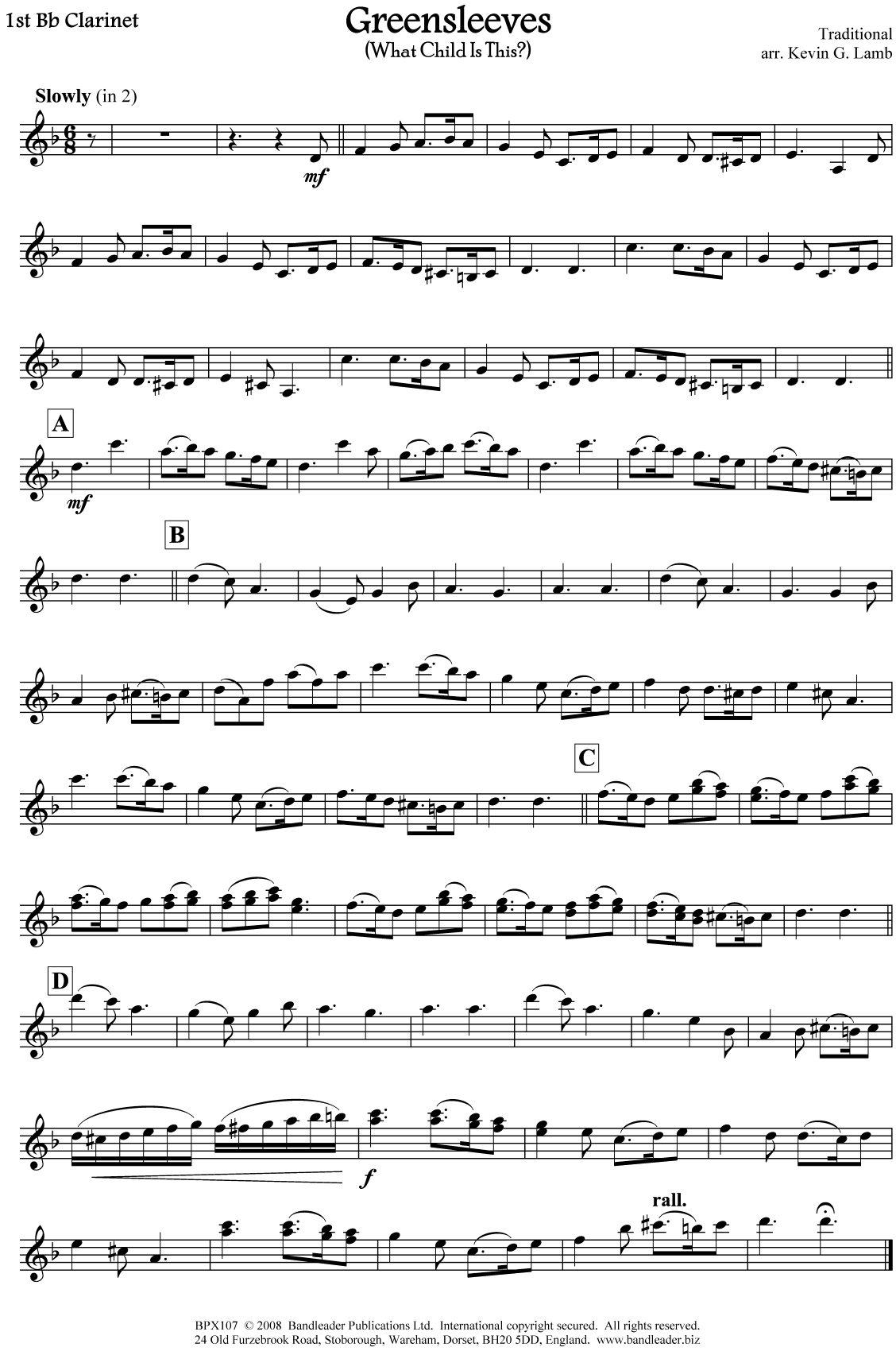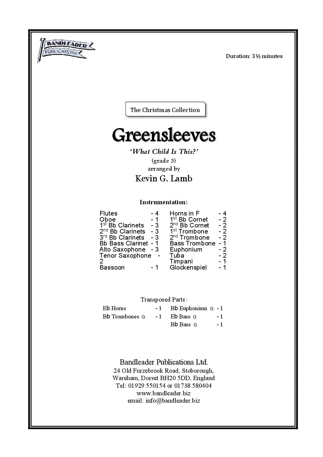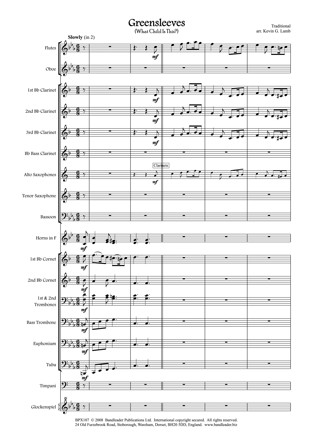 Greensleeves is often sung at Christmas to the words “What Child is this, who laid to rest, on Mary’s lap is sleeping?” It can be performed solely as a band piece or with the audience joining in.