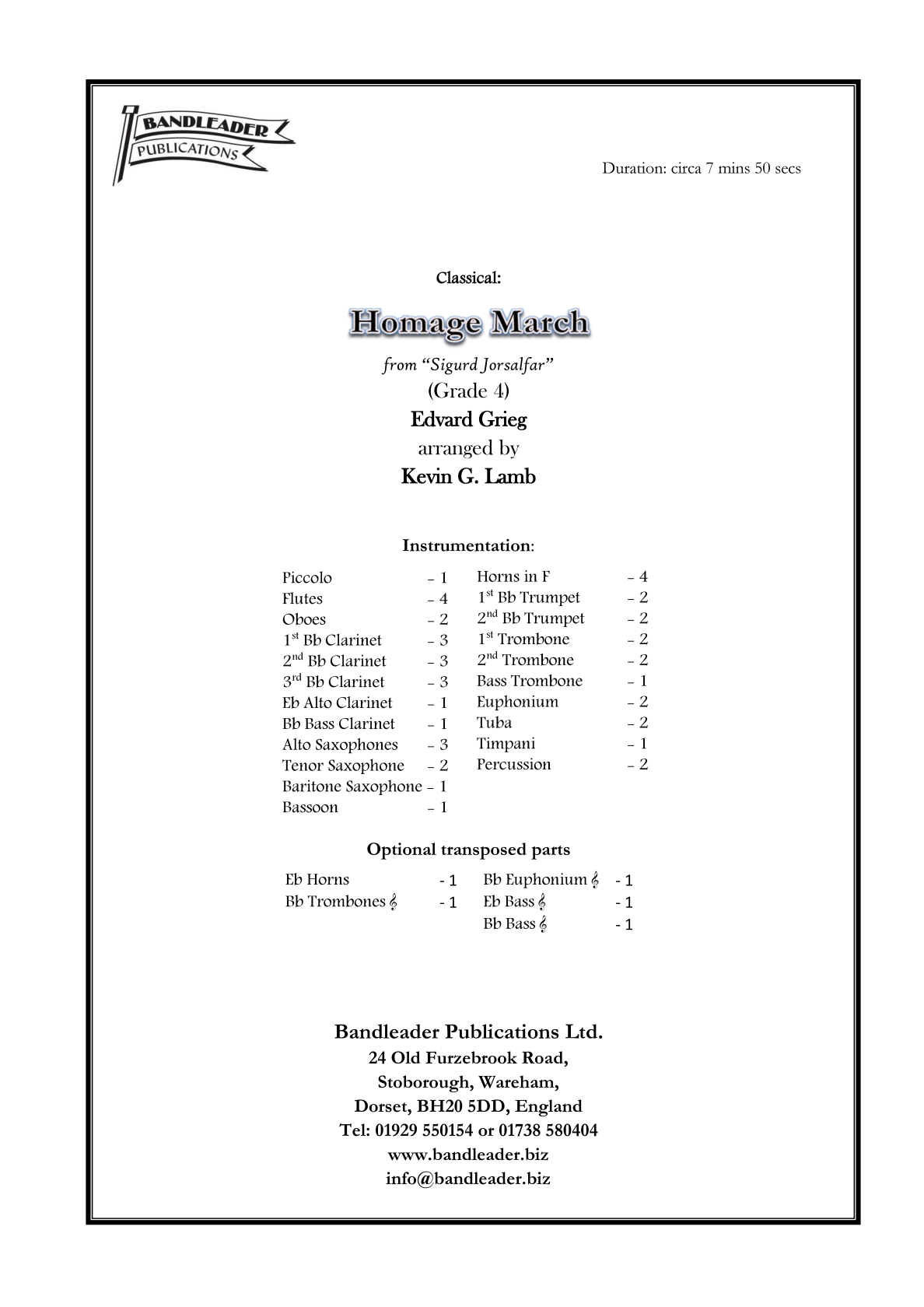 A powerful, yet majestic march. This is a major work, worthy of inclusion in your concerts.