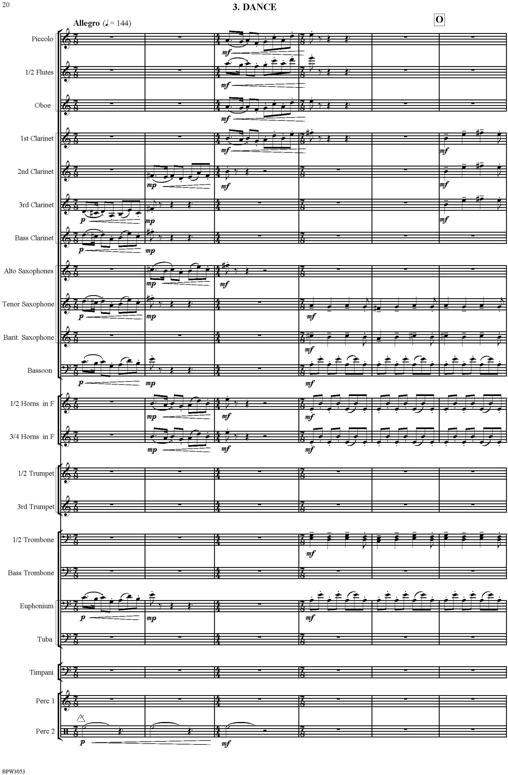 An exciting work, the first and last movements feature irregular rhythms, whilst the second features a beautiful haunting melody.
