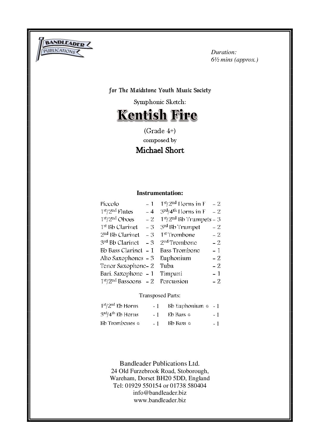 Commissioned by the Maidstone Youth Wind Orchestra, “Kentish Fire” reflects the energy & enthusiasm of these young musicians.