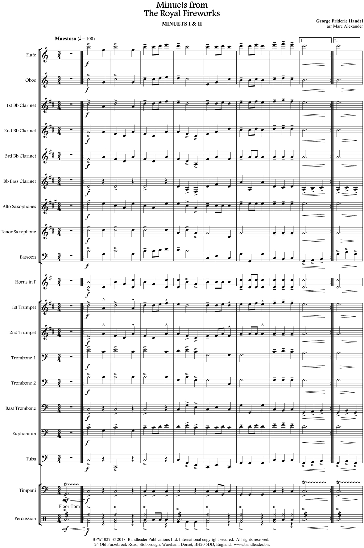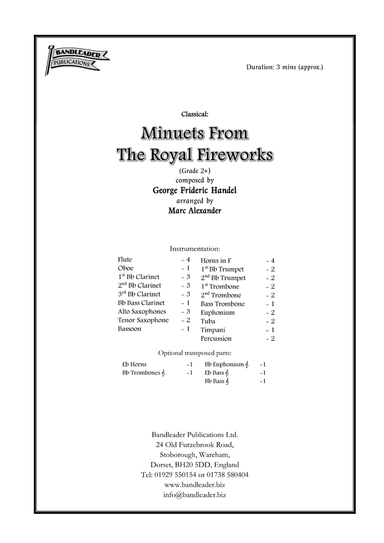 A majestic arrangement of the two famous minuets from the suite. Excellent music for your concerts!