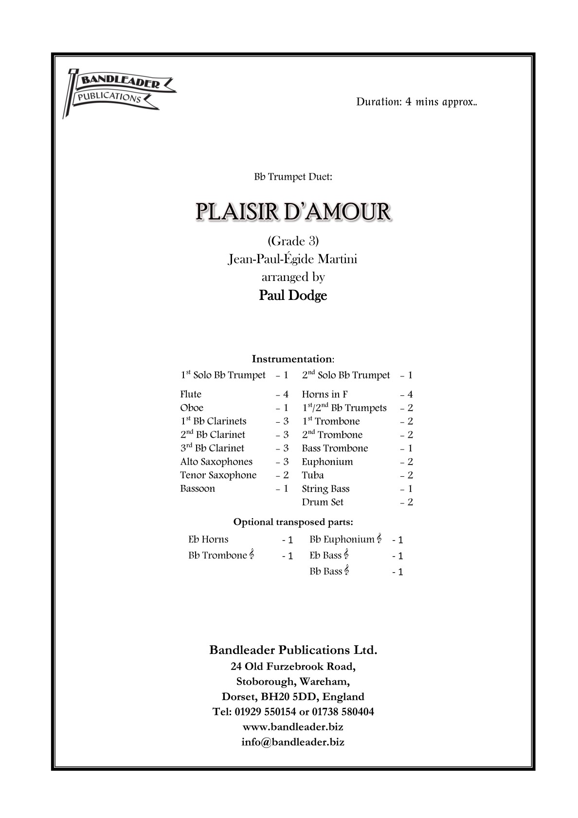 Instrumentation: TRUMPET DUET with Wind Band