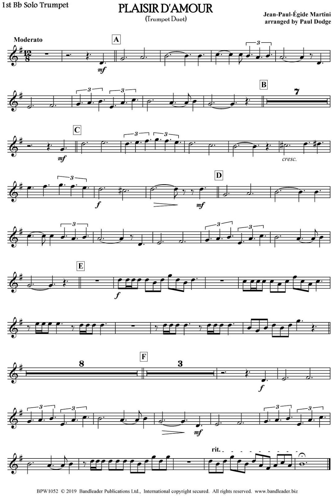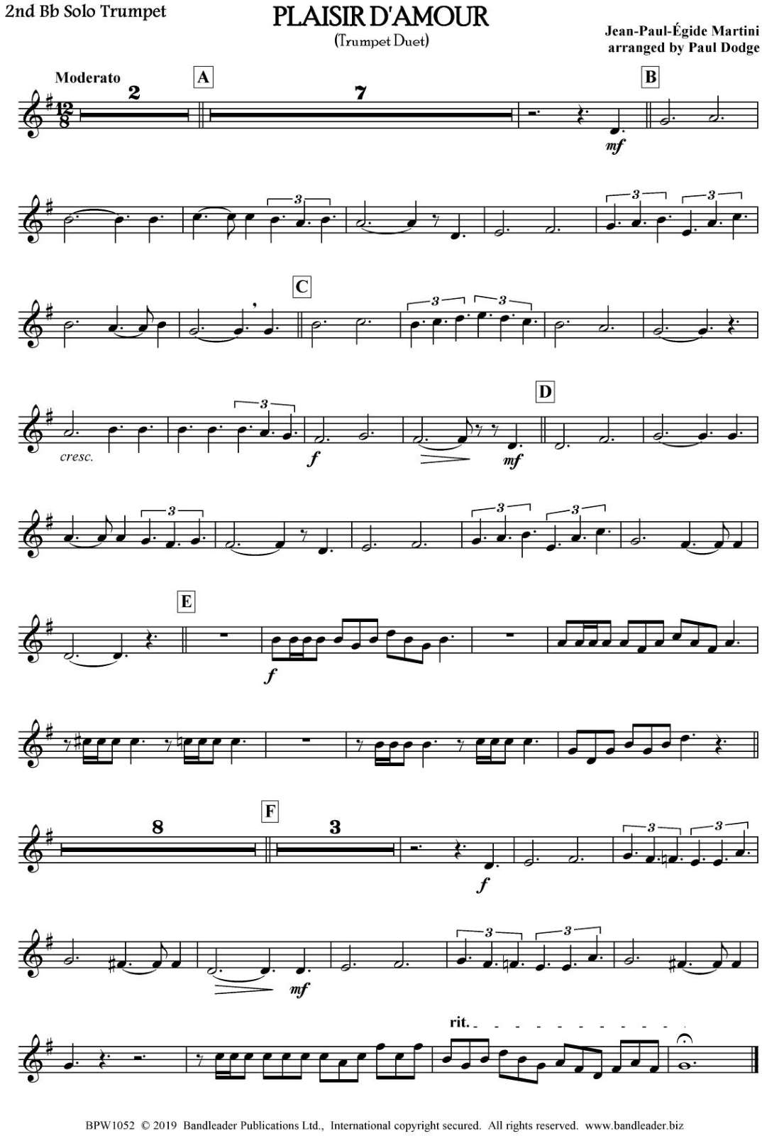 This arrangement features two trumpets with wind band accompaniment. It makes an ideal concert item and is most effective with the two trumpeters standing either side of the conductor.