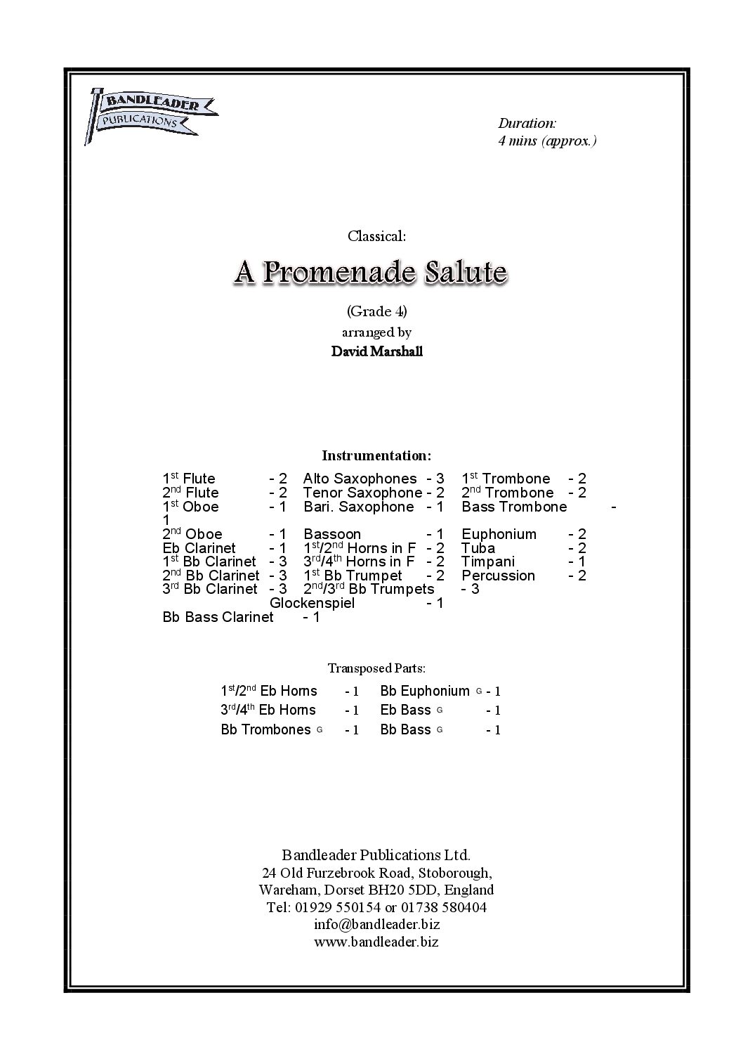 PROMENADE SALUTE (A) for Wind Band arranged by D J Marshall.