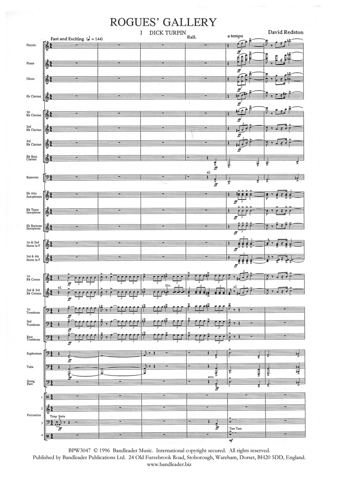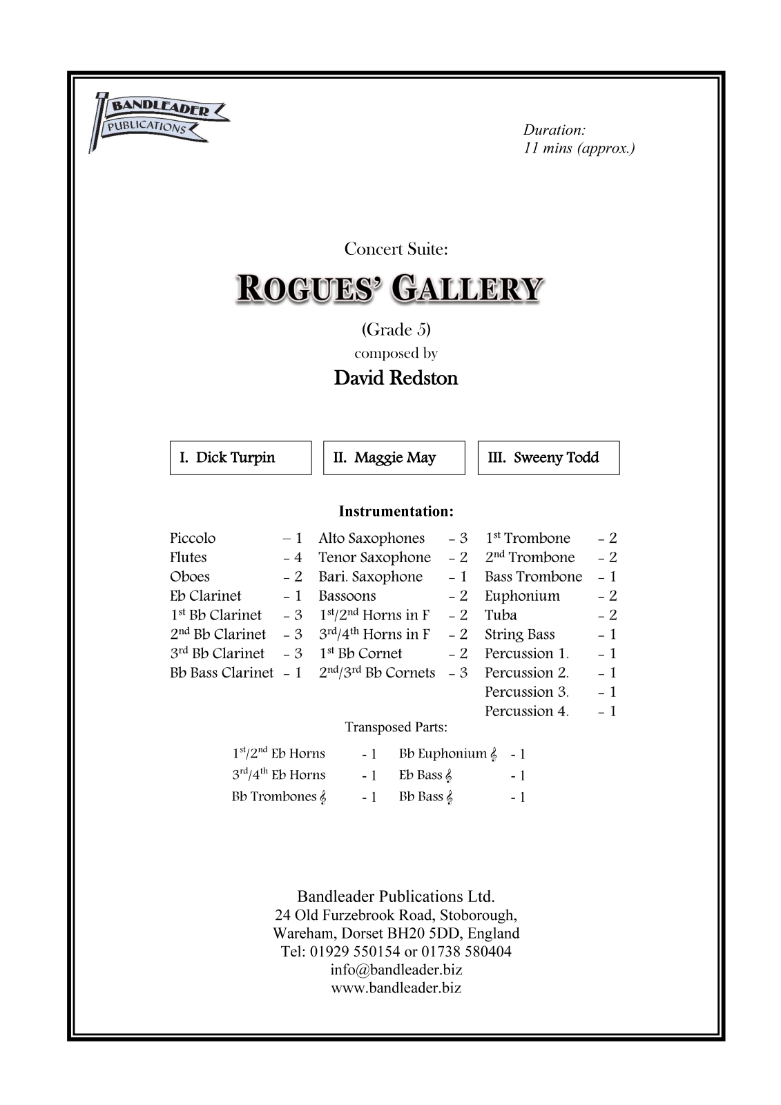 A great concert suite in 3 movements, each describing one of three of England’s most legendary rogues! The three movements are: ‘Dick Turpin’,’ Maggie May’, and ‘Sweeny Todd’.