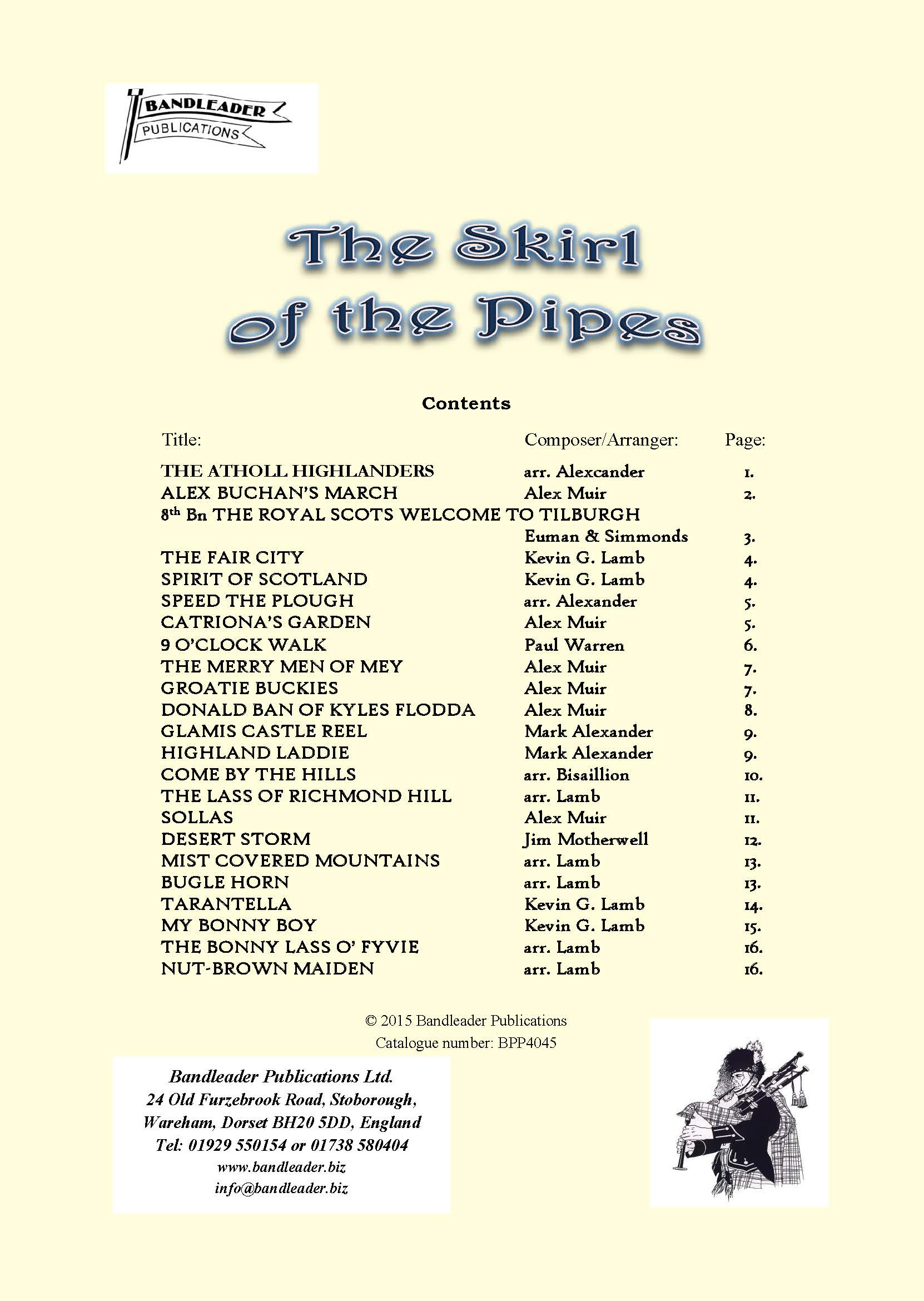 A collection of Marches, Strathspeys, Reels and Jigs from several respected composers and arrangers of Pipe music. bagpipes