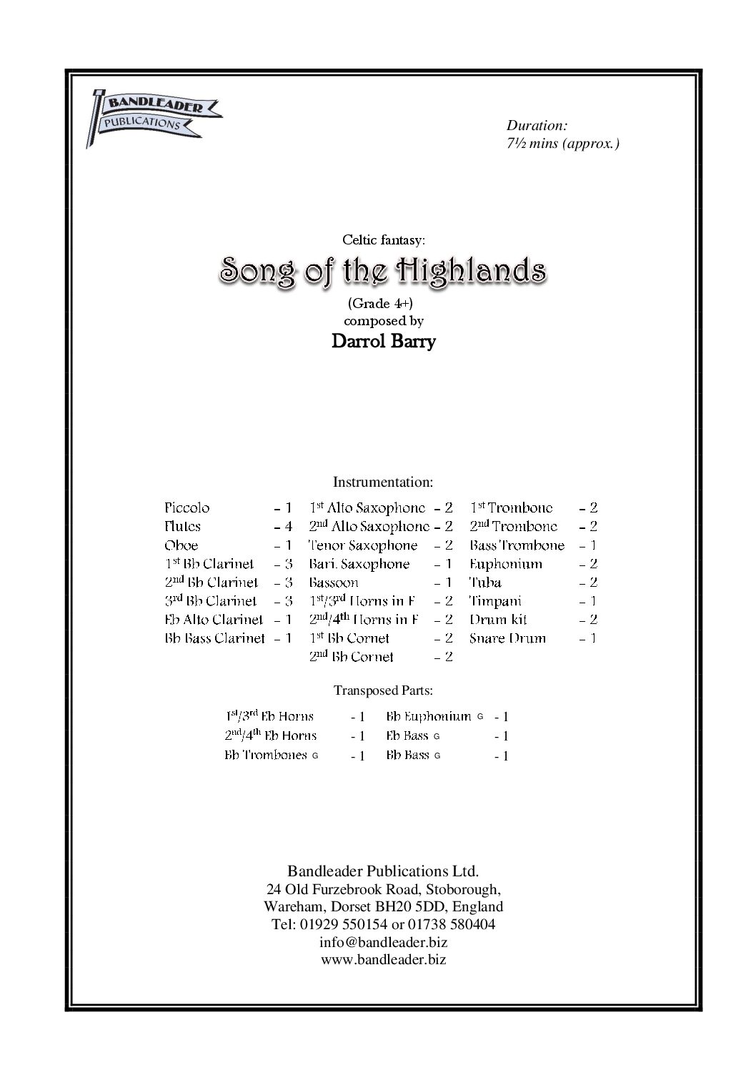 An outstanding work for symphonic wind band. An evocative work depicting the highlands of Scotland.