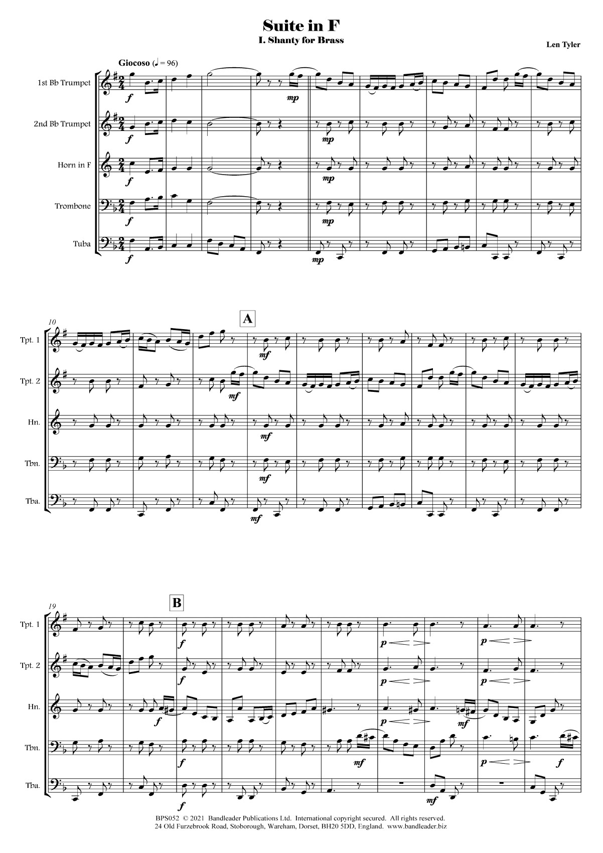 Instrumentation: 2 Trumpets; Horn in F; Trombone; Tuba (Alternative parts: Horn in Eb; Bb Trombone TC; Eb Bass TC)