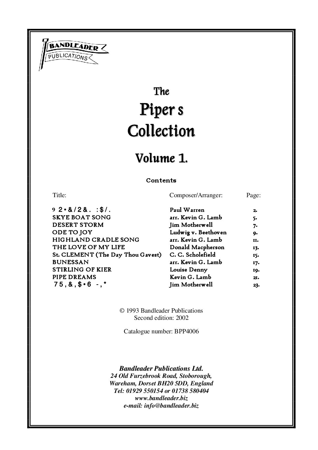 This was Bandleader’s first collection ‘purely for Pipers’ and published in 1993.