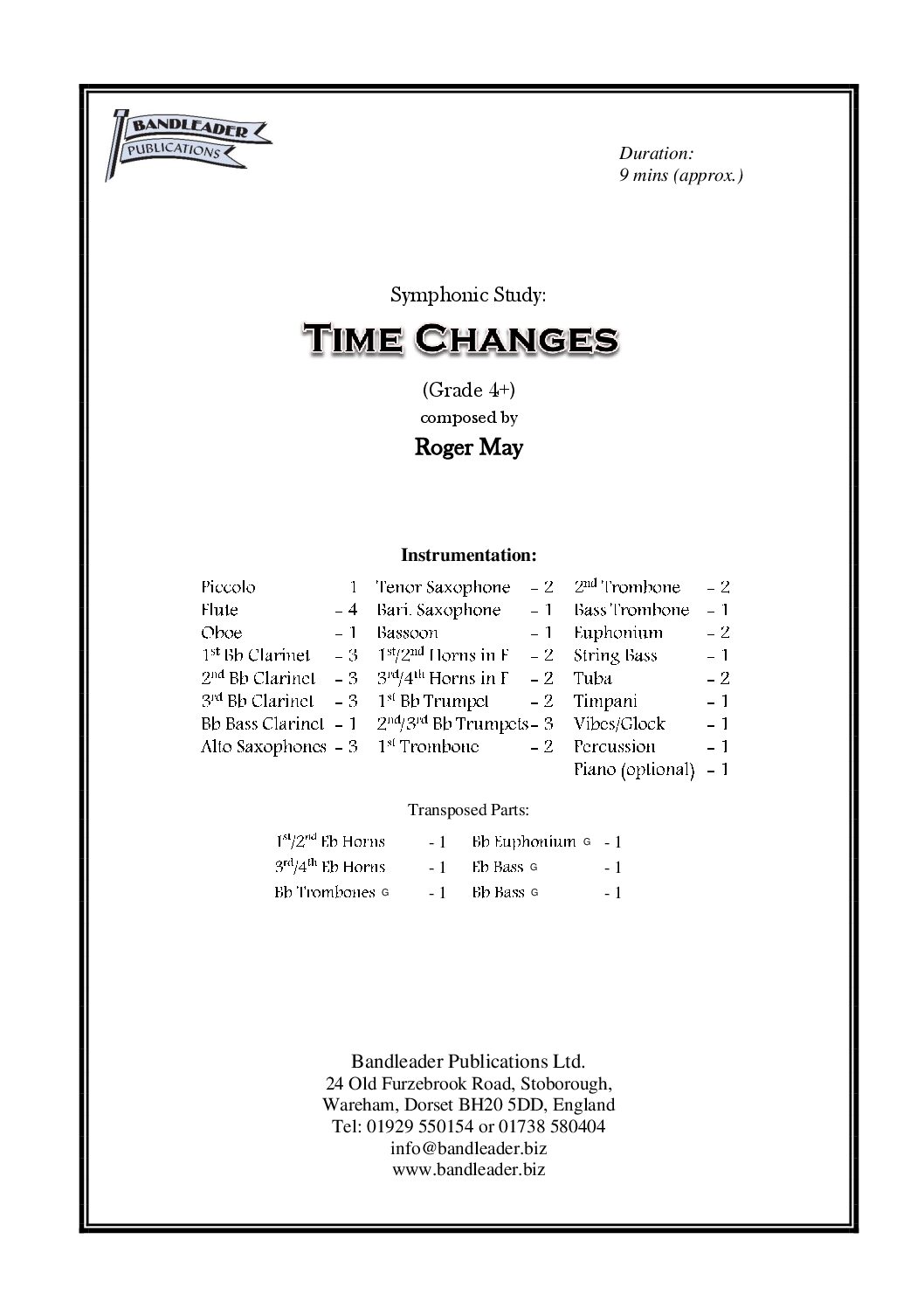 As the title suggests, pulsating irregular rhythms and atmospheric sounds make this symphonic study a real test for your musicians. “Time Changes” was premiered at the 1995 BASBWE conference.