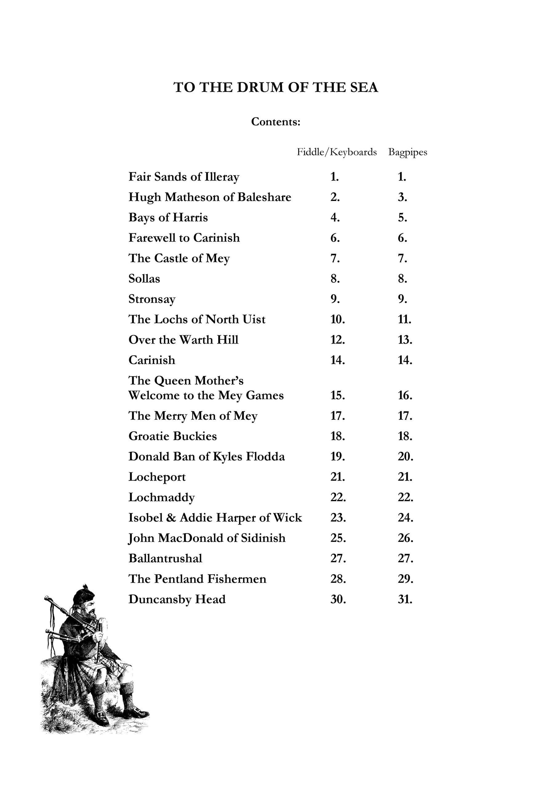 Instrumentation: Bagpipes, Fiddle & Keyboard