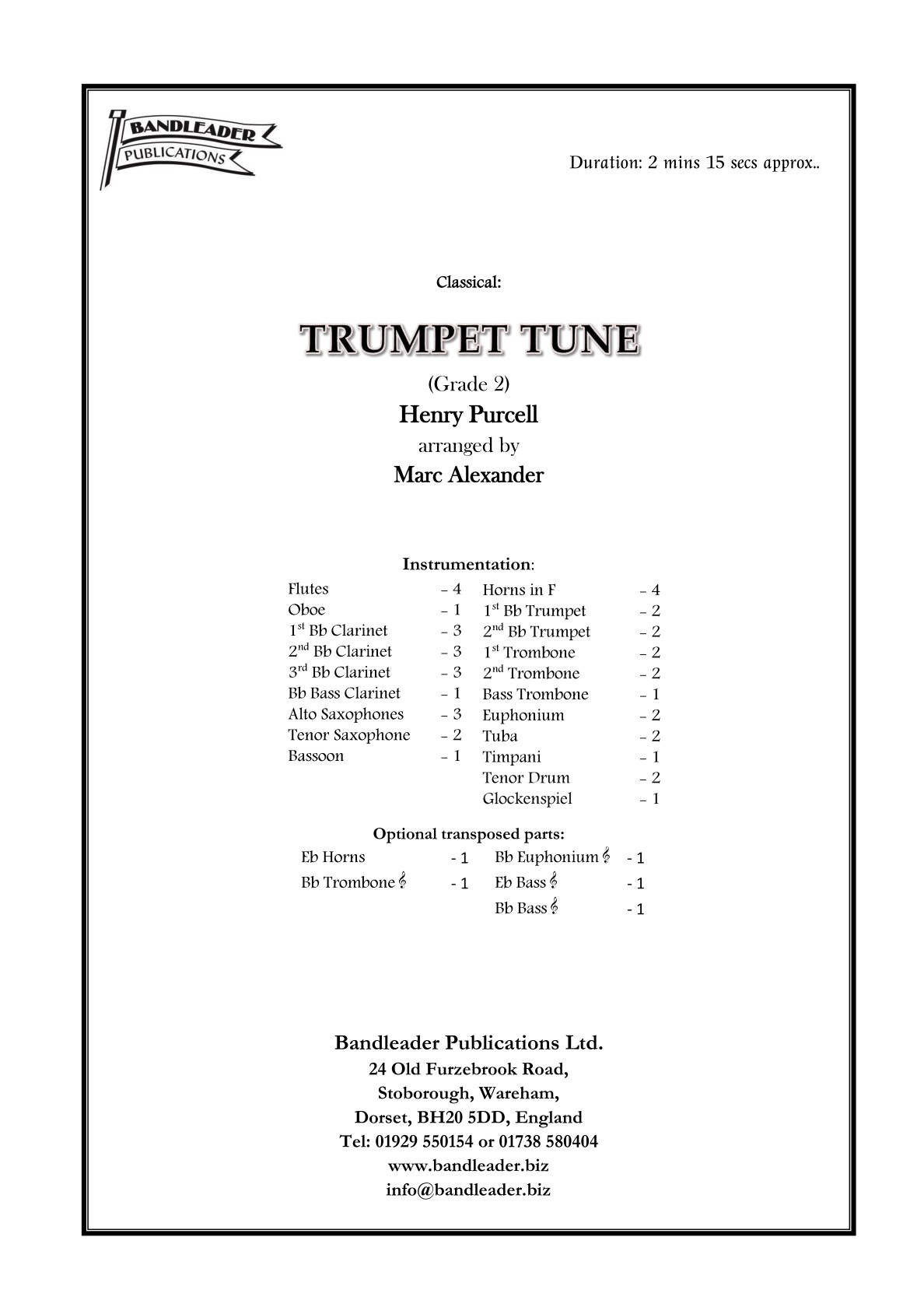 Purcell’s famous Trumpet Tune has been expertly arranged by Marc Alexander for the budding young concert band.