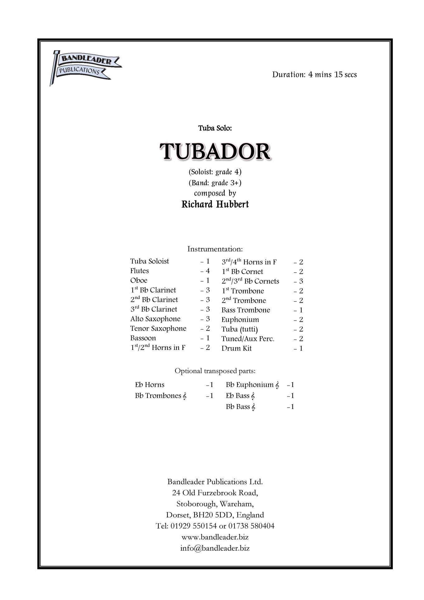 Instrumentation: TUBA solo with Wind Band