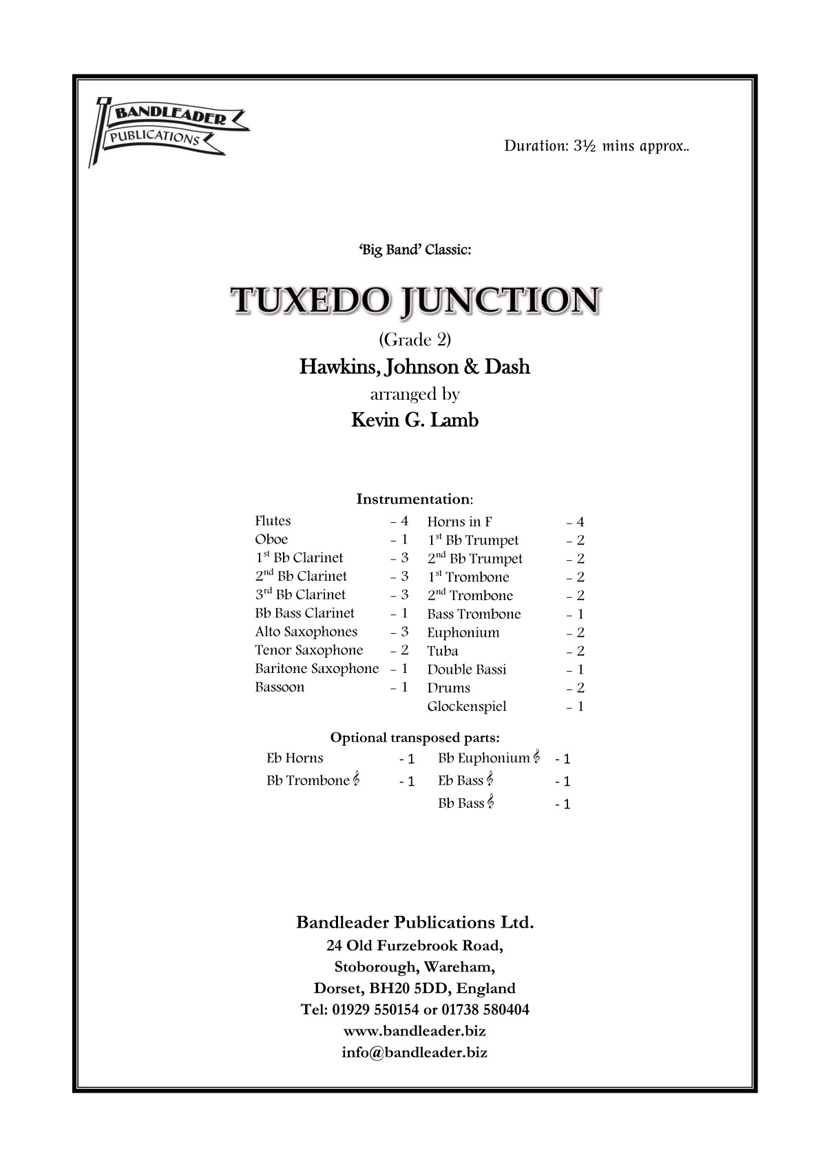 One of the great ‘Big Band’ standards arranged by Kevin Lamb. It will undoubtedly delight your musicians and your audiences!