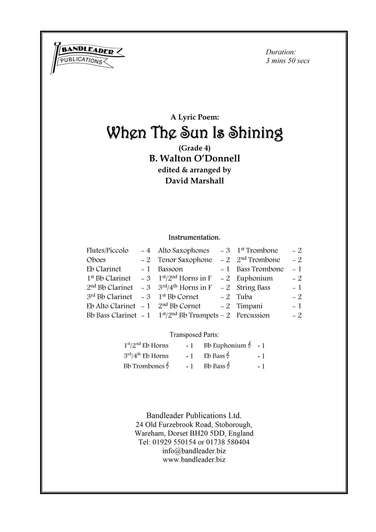 An elegant piece featuring an evocative melody on the Clarinet, which is then explored by the Cornet. Essential repertoire.